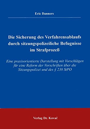 Free Die Sicherung des Verfahrensablaufs durch sitzungspolizeiliche Befugnisse im Strafprozeß . Eine praxisorientierte Darstellung mit Vorschlägen für eine ... § 238 StPO (Studien zur Rechtswissenschaft) PDF Download pdf shared files: Here you can find PDF Die Sicherung des Verfahrensablaufs durch sitzungspolizeiliche Befugnisse im Strafprozeß . Eine praxisorientierte Darstellung mit Vorschlägen für eine ... § 238 StPO (Studien zur Rechtswissenschaft) Kindle pdf shared files we have found in our database. Just click file PDF Die Sicherung des Verfahrensablaufs durch sitzungspolizeiliche Befugnisse im Strafprozeß . Eine praxisorientierte Darstellung mit Vorschlägen für eine ... § 238 StPO (Studien zur Rechtswissenschaft) Online and download link will popup
